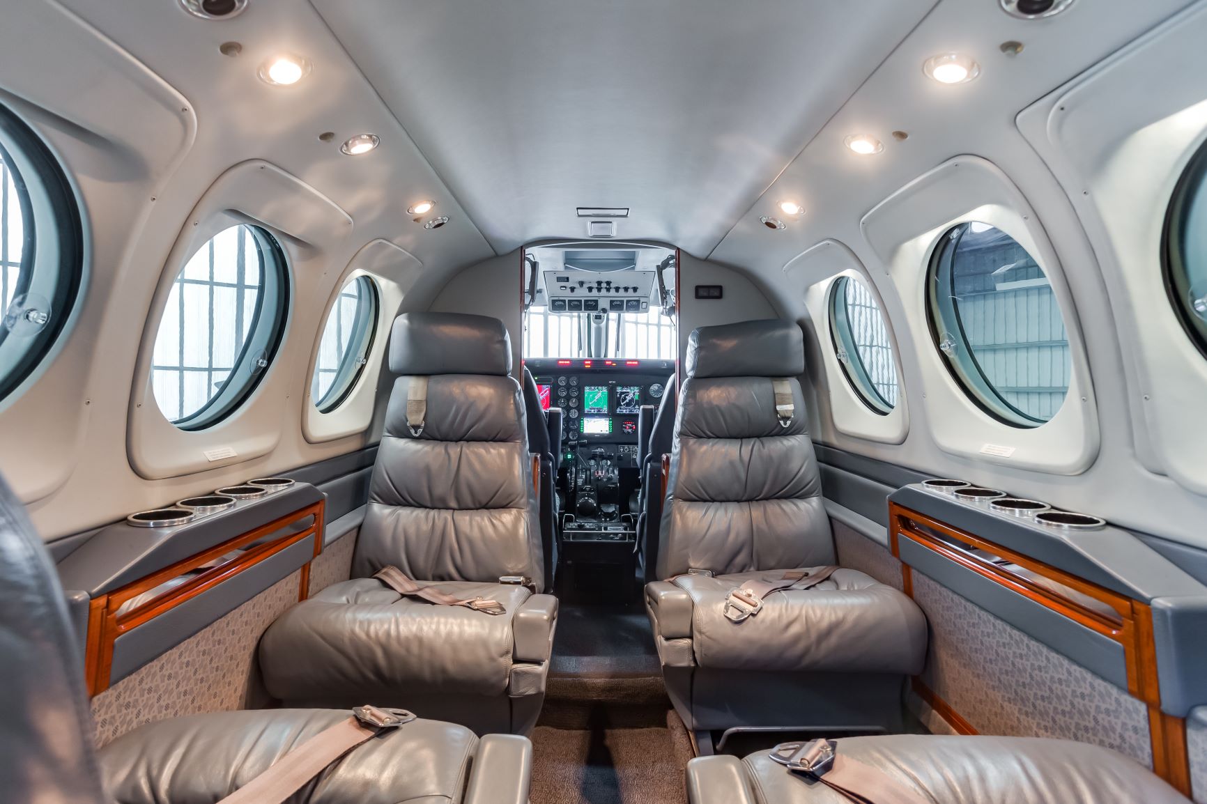 The King Air C90 can carry up to seven passengers in its pressurized cabin with in-flight accessible baggage hold. Ideal for short trips with 4-6 passengers, the King Air C90 and its later models are a fantastic value option for short weekend trips with light baggage.