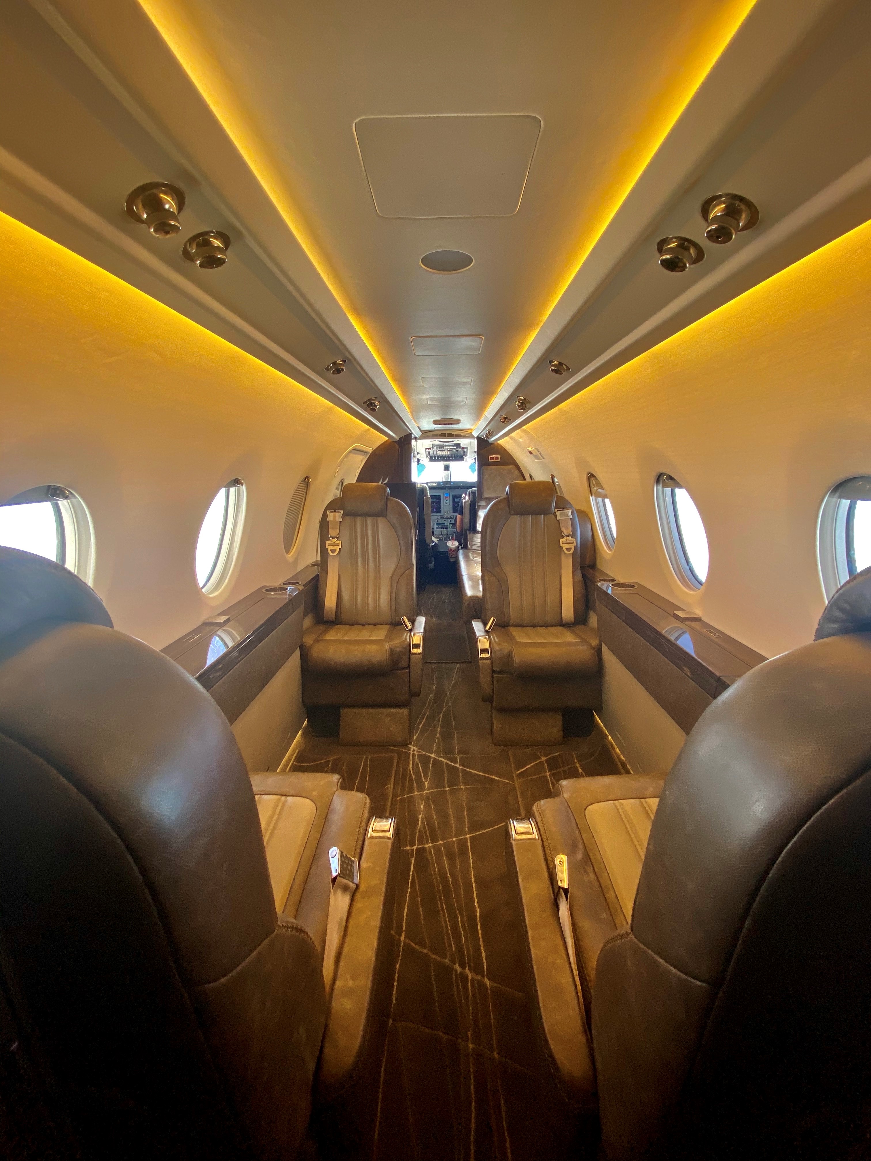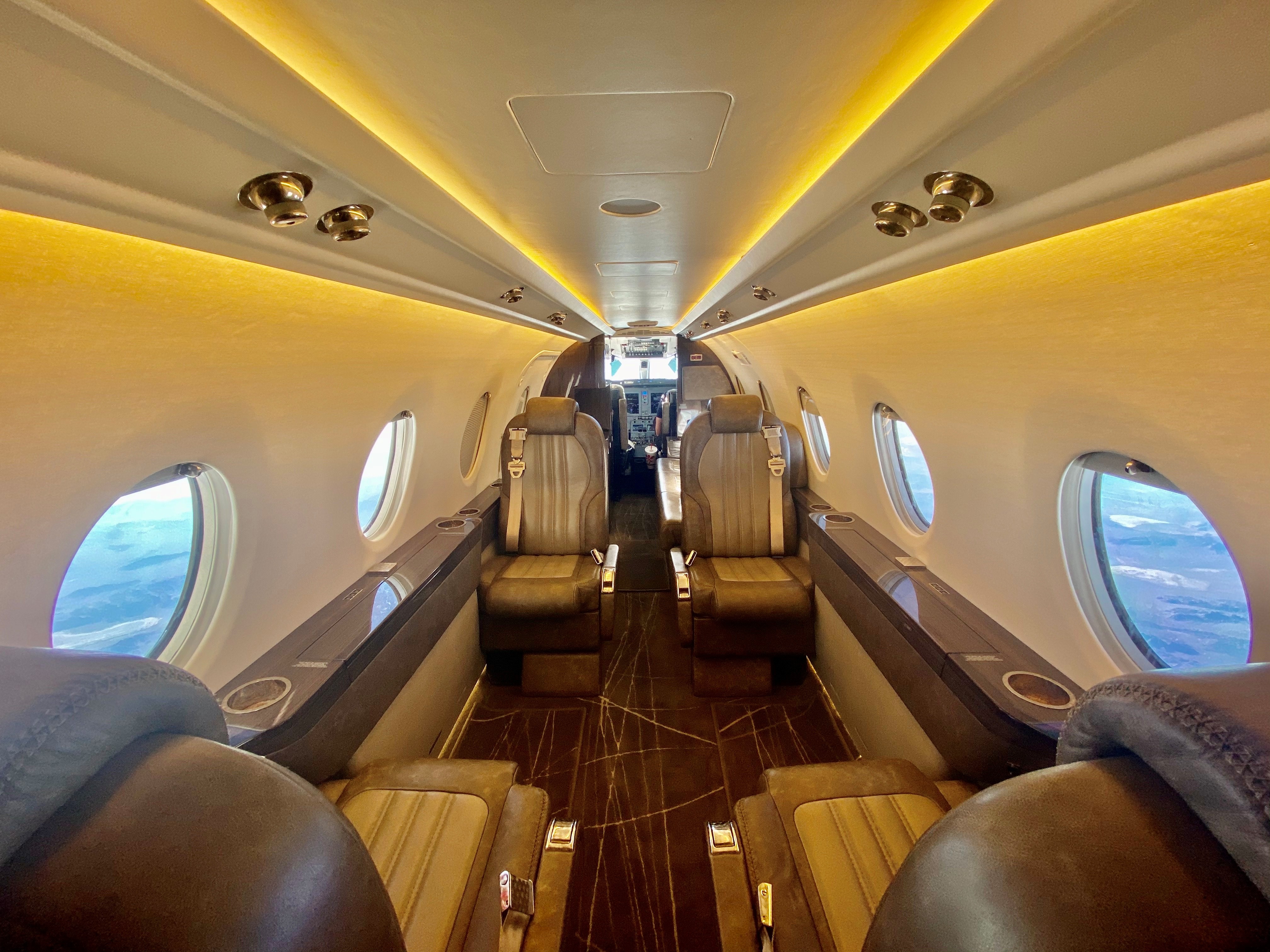 This spacious and luxurious jet can accommodate up to 7 passengers and has a range of over 2,000 nautical miles and cruising speed of 517 MPH. It is the perfect aircraft for business or leisure travel. Contact us today to learn more and book your flight!